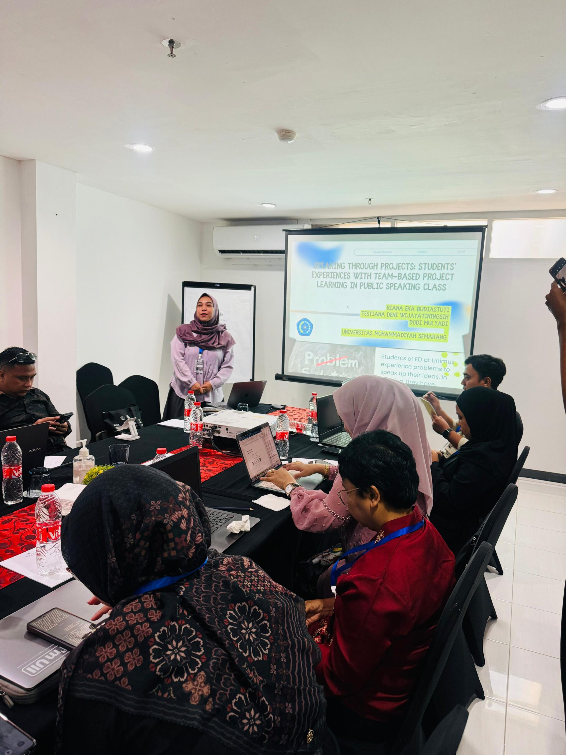 Dalam sesi presentasi ilmiah, dosen UNIMUS yakni Dr. Testiana Deni Wijayatiningsih, Riana Eka Budiastuti, dan Dr. Dodi Mulyadi memaparkan hasil penelitian berjudul “Speaking through Projects: Students’ Experiences with Team-Based Project Learning in Public Speaking Class.”