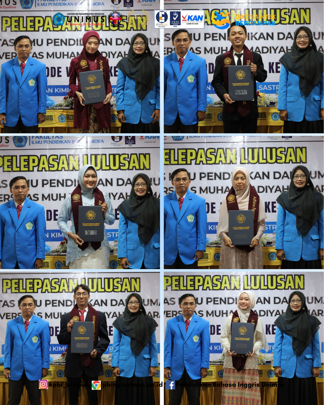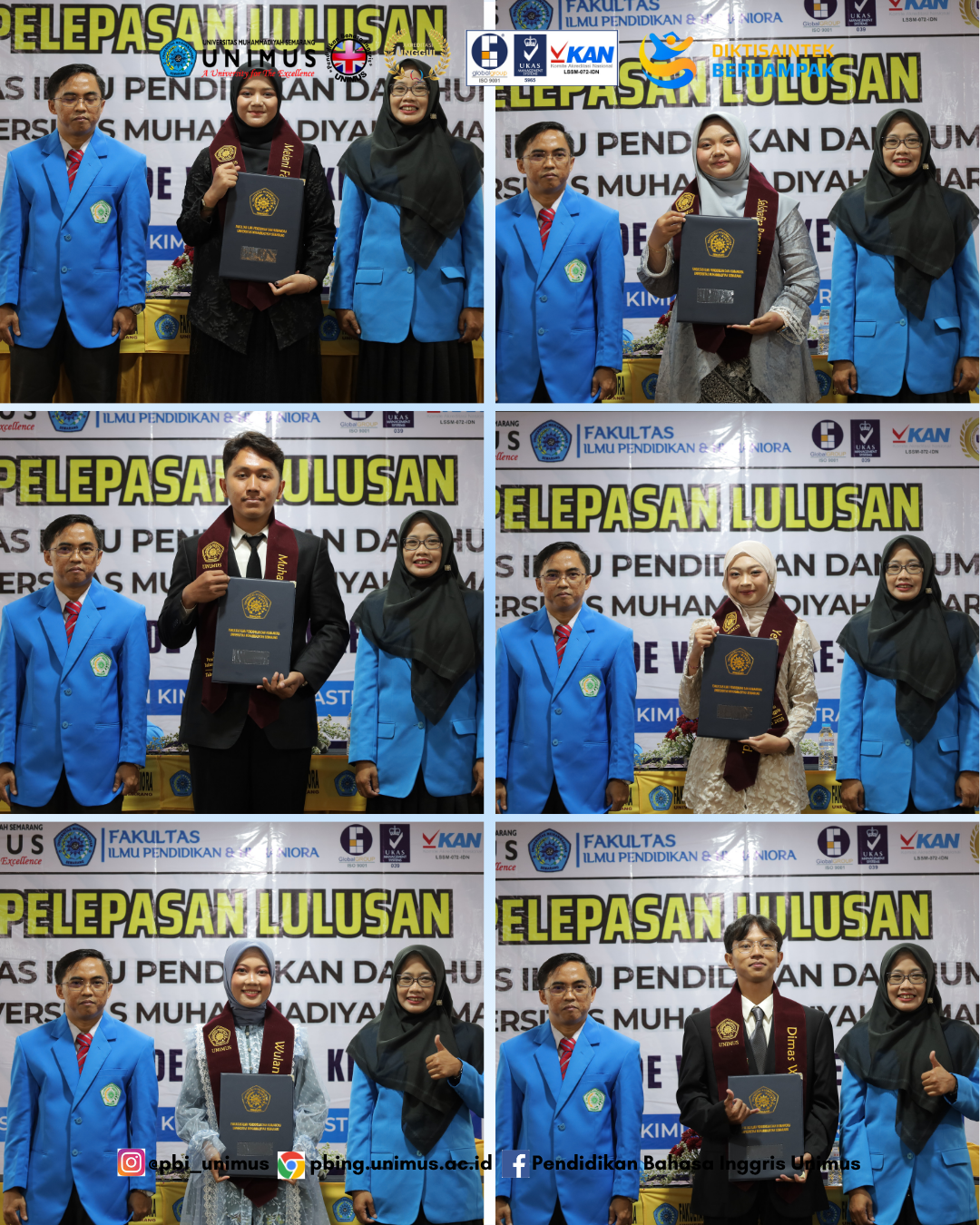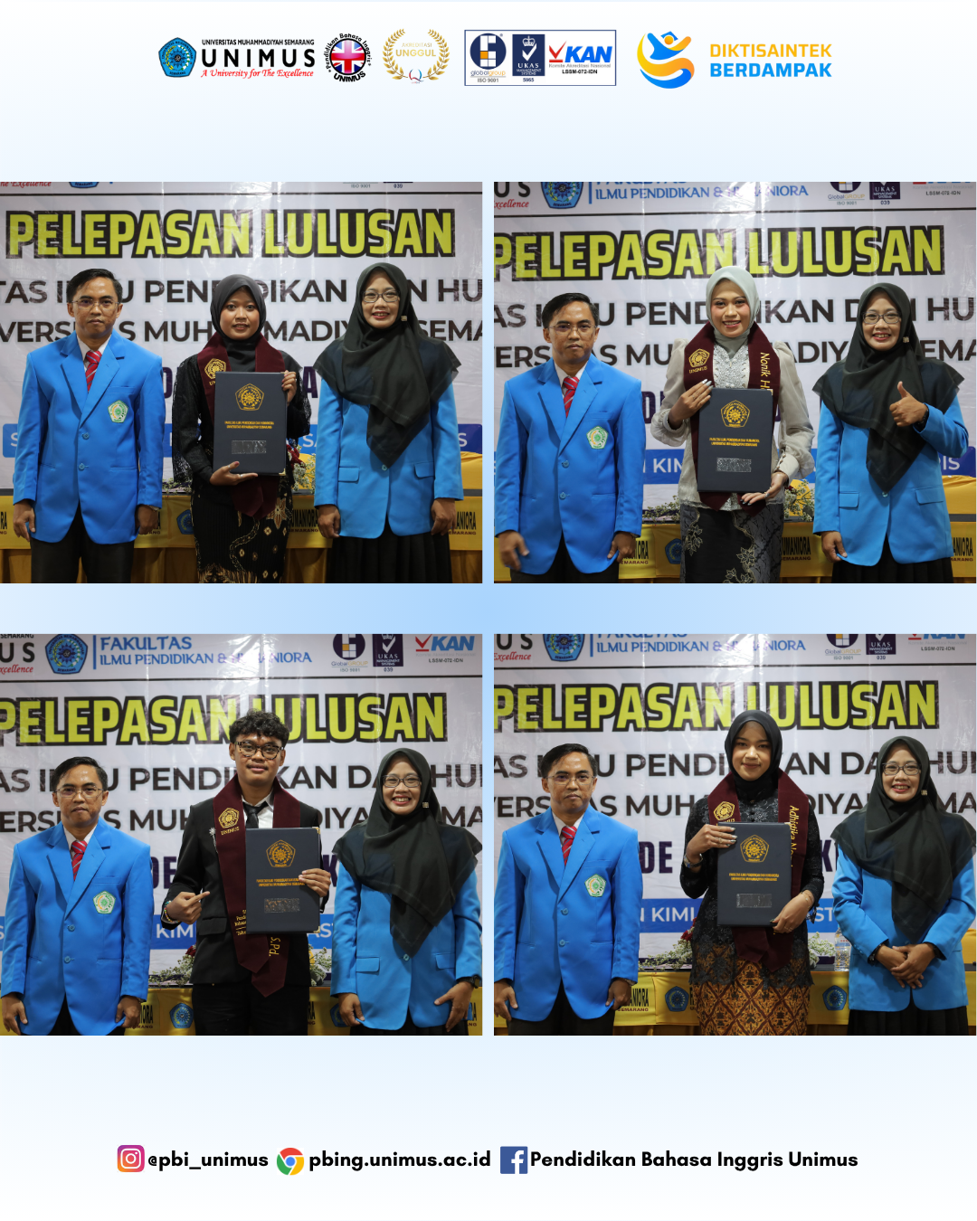 Selamat dan Sukses kepada alumni Prodi S1 Pendidikan Bahasa Inggris UNIMUS dalam Pelepasan alumni Fakultas Ilmu Pendidikan dan Humaniora. Semoga ilmu yang di dapat selama di bangku perkuliahan bermanfaat bagi bangsa dan negara.